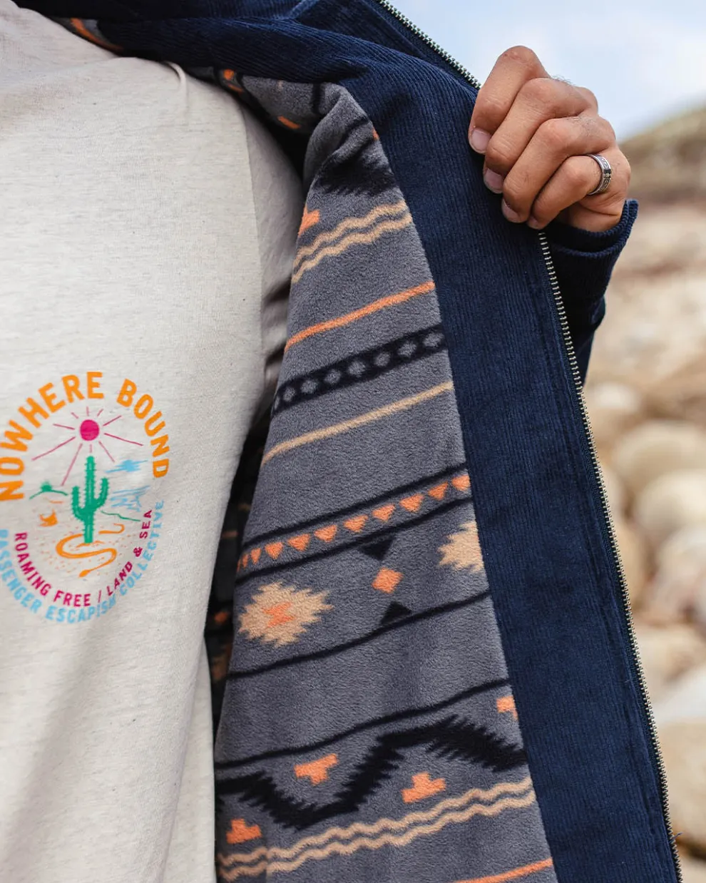 - Recycled polar fleece printed lining.