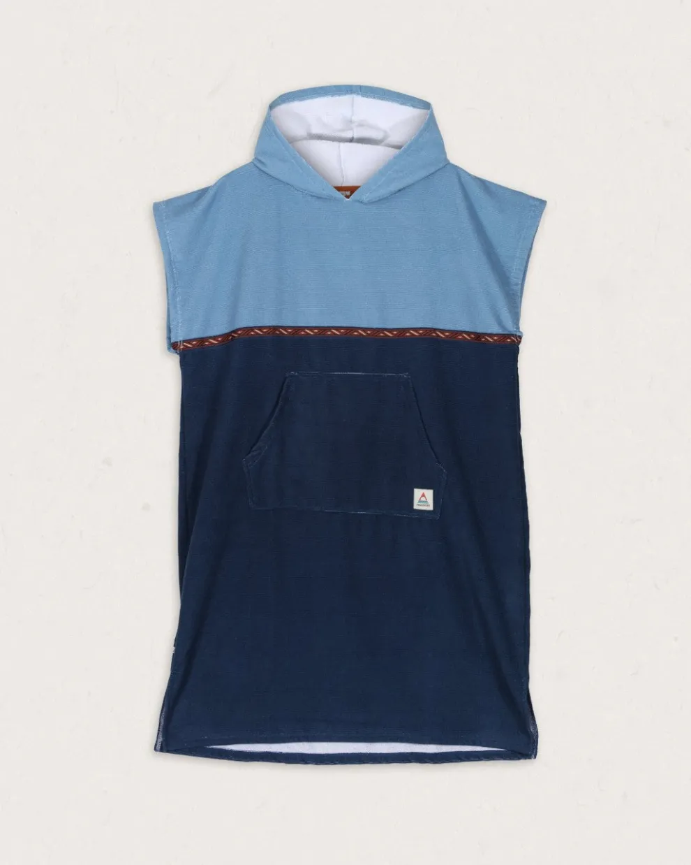 - Towel poncho with a hood and patch pockets.