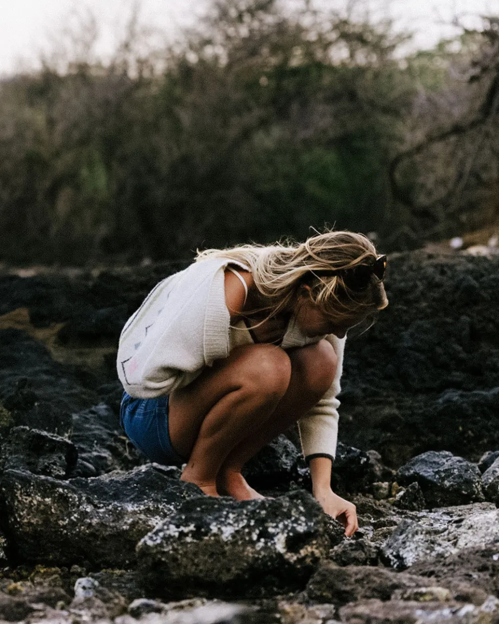 - Mid-weight open front cardigan made in soft recycled yarns with a jacquard knit pattern.