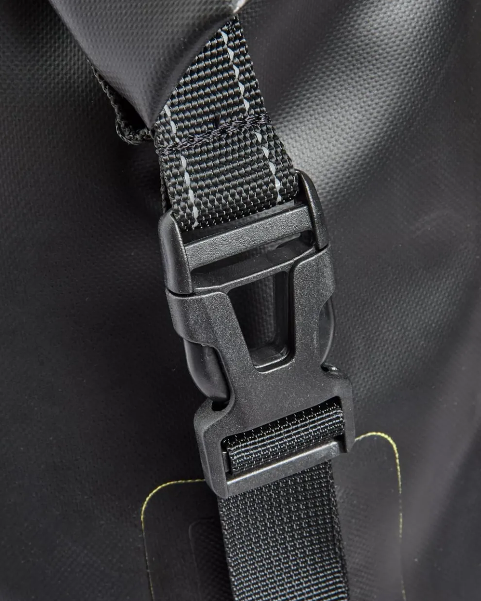 - Roll the top tightly at least 3 times before securely snapping shut the side buckles
