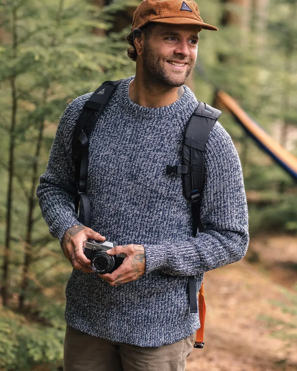 The Fog is a classic fisherman rib knit, updated and improved in new recycled yarn. Made for those wild coastal days or just sat stoking the fire it’s a solid mid layer designed to keep you warm.