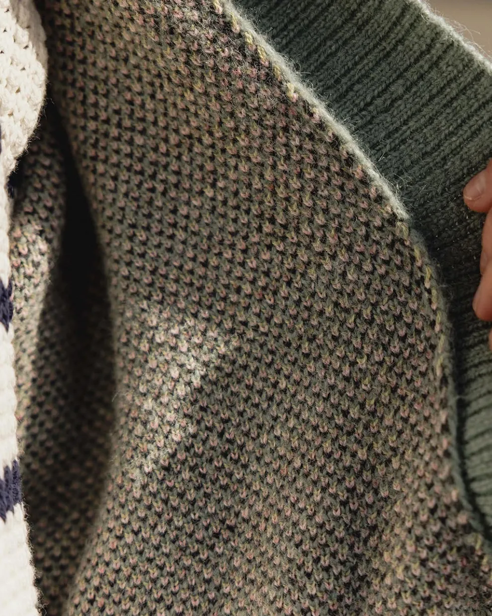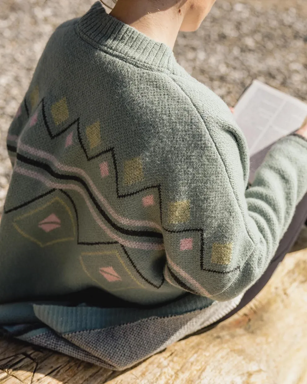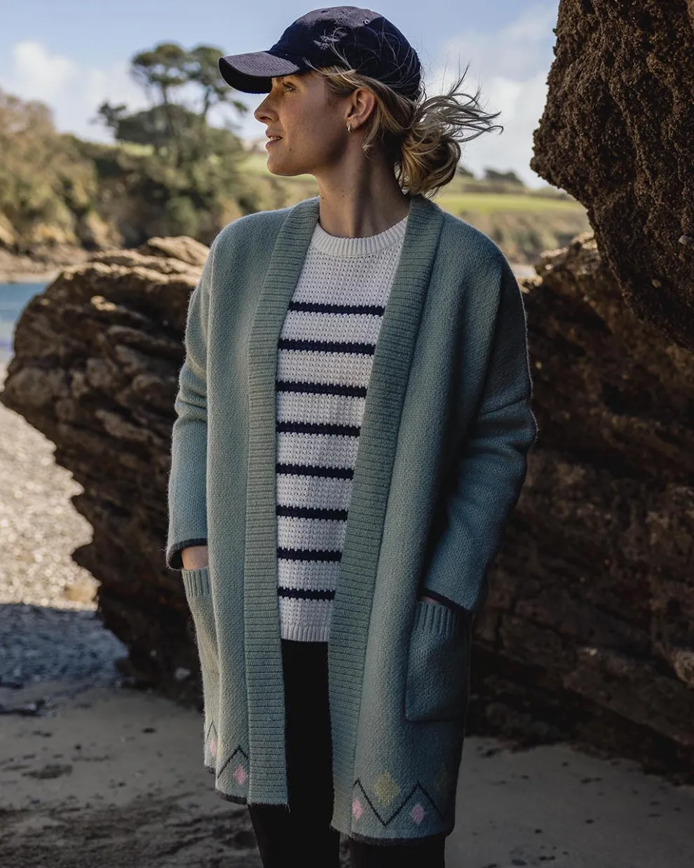 Layer up in the forever classic Leif Cardigan, featuring longer line fit with rib detail and a jacquard pattern adding a touch of colour to your style. A perfect layer to any outfit and made in a recyled wool blend for extra warmth.
