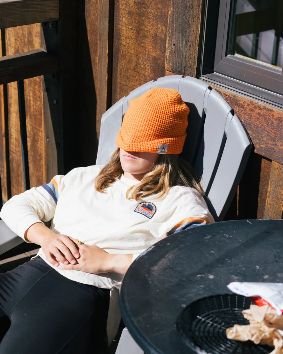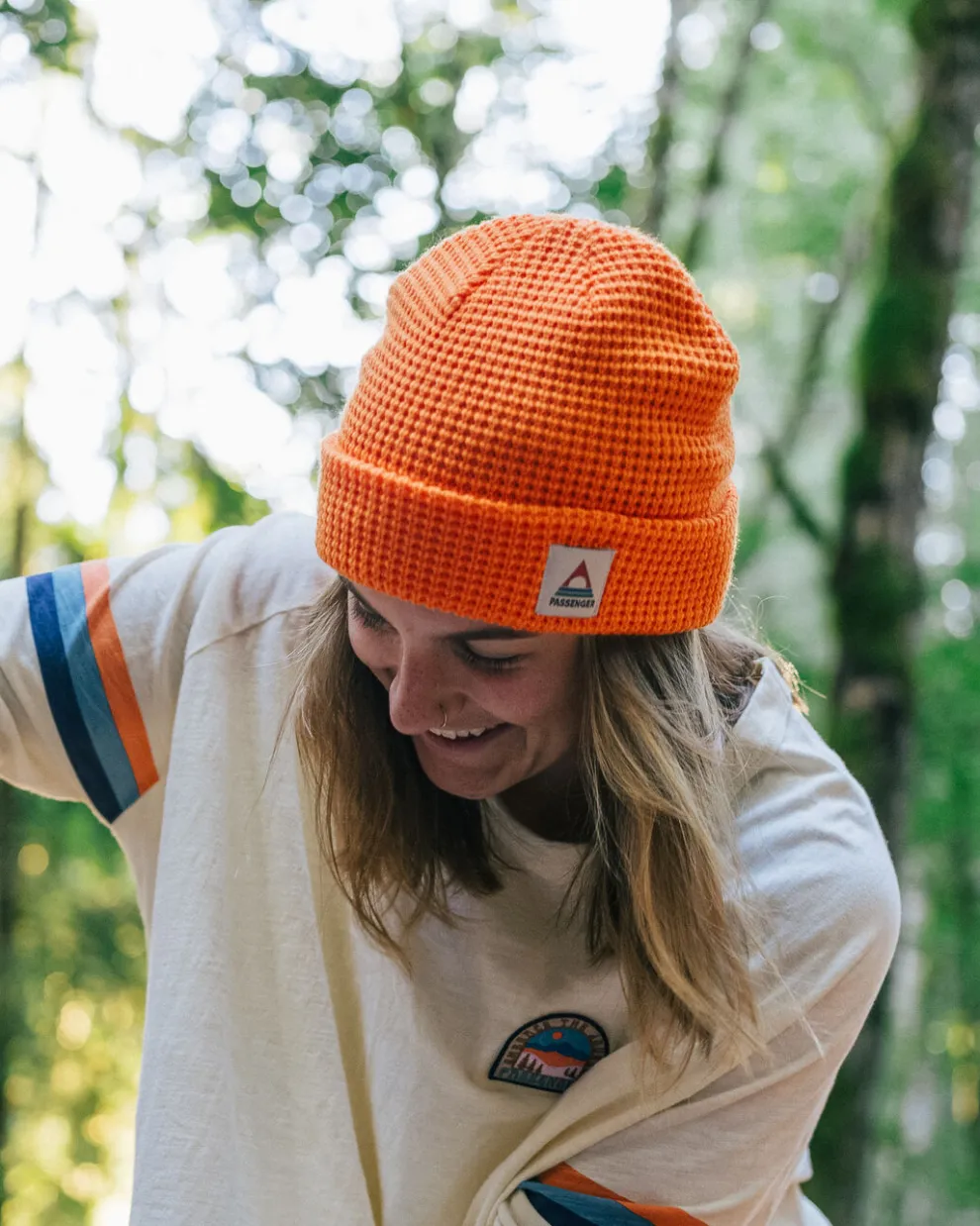 - Double layered waffle knit beanie, design in a ‘high top’ style.