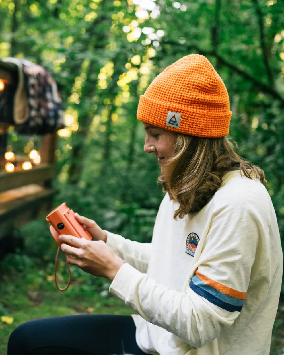 The Moss beanie is an outdoor staple. Keeps the heat in and the cold out with it’s double layer construction. Made in Recycled Acrylic for a lighter tread on the planet.